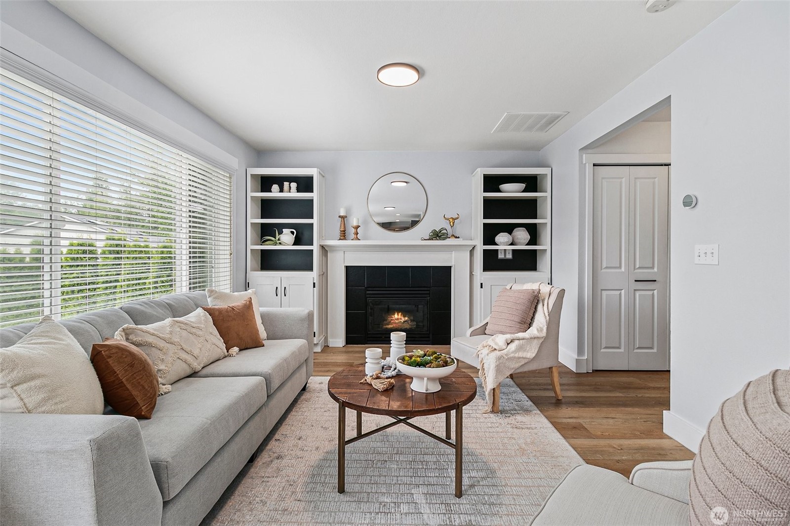 - Keep it Neutral: Use soft, seasonal accents like warm throws or amber-toned pillows — skip the oversized décor that distracts from your home’s features.